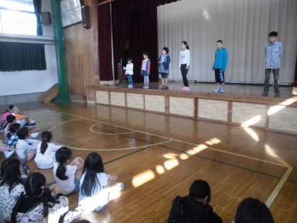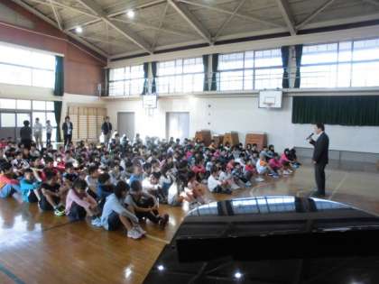 各学年の代表者が後期に頑張ることを全校のみんなに発表してくれました。一人一人が「自分の目標を考えながら聞く」ことができたと思います。3月の修了式の日の自分を思い浮かべながら毎日を過ごしてほしいと思います。