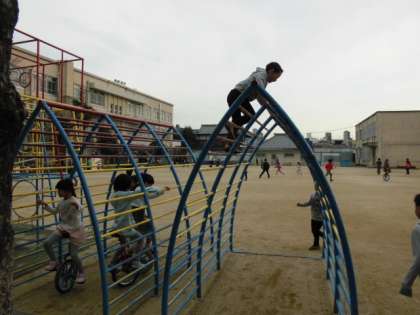 中間休みには寒さに負けず,たくさんの人が運動場に出てきました。おにごっこや一輪車などそれぞれ楽しそうに遊んでいました。