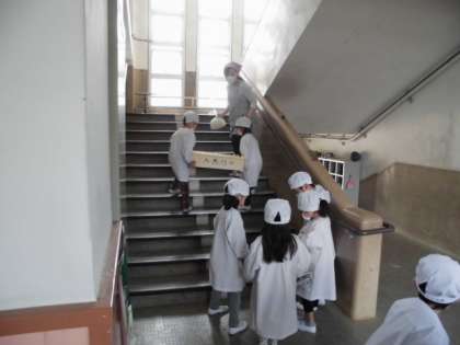 給食室から遠いので運ぶのが大変ですが,頑張っていました。また,手洗いや身支度など覚えることもたくさんですが意欲的にやっていました。