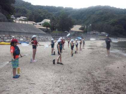 砂浜でパドルの動かし方を練習してから、海に向かいました。