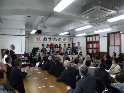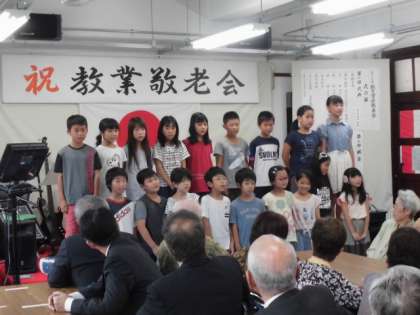 18日の日曜日に教業学区の敬老会に4年生が参加しました。たくさんの方の前で言葉と歌のプレゼントをしました。教室では「声が小さい」と注意を受けることの多い4年生ですがこの日は言葉もはきはき,歌もしっかり歌詞を覚えてとても上手に歌えました。