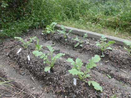 間引きをして約一週間,大根が大きくなってきました。ただ虫に食われた葉っぱも出てきて少し心配です。薬をまいてみましたが,ちゃんと育つかとても心配しています。