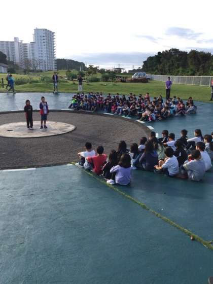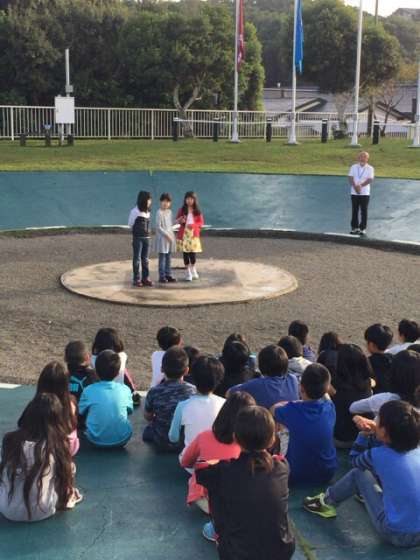 朝の集いで学校紹介をしました。緊張して言うことを忘れてしまいそうになりながらも、頑張って紹介の言葉を言うことができました。昨日、声が小さかった校歌を今日は頑張ろうと呼びかけて、頑張って歌うことができました。やればできることをしっかりと頑張れる子になっていってほしいです。