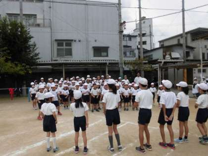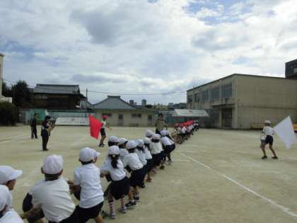 綱引きは今年度低学年と高学年に分かれて実施します。安全面と応援がいる方が盛り上がるという理由です。低学年の時は高学年が,高学年の時は低学年が大きな声で応援していました。応援の練習も相手チームを見てさらに力が入っていました。