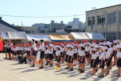 10月15日(土)秋晴れのもと,28年度の運動会が開催されました。エール交換で気分は盛り上がります。