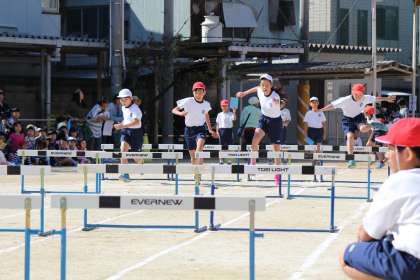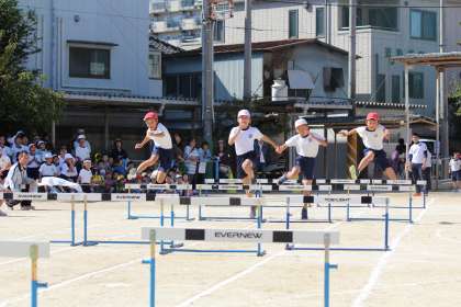 高学年のハードル走は迫力満点です。低く跳ぶ練習をしてきましたが本番では実力が発揮できたでしょうか。