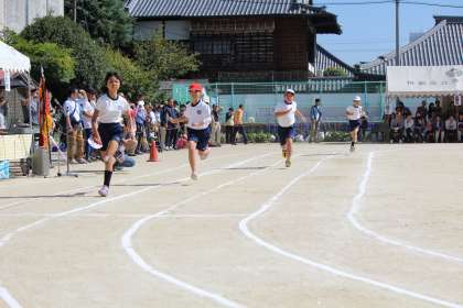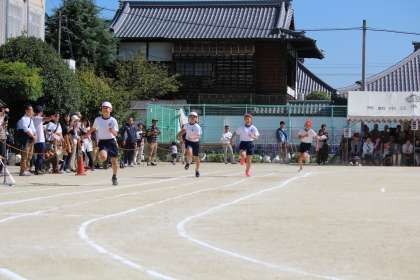 高学年の徒競走は100mです。カーブを走るところが難しいところです。懸命に追う姿にも感動しました。