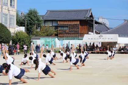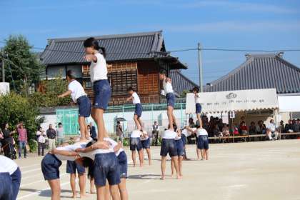 運動会の花、組体操です。今年はリズムダンスも入れたため,長い演技になりましたが,練習も本番もよく頑張りました。
