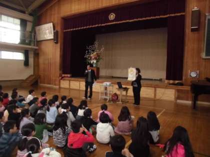 里見先生から「49絆プロジェクト」についてお話してもらいました。これは中京区の4つの中学校と9つの小学校が同じ目標をもって子どもたちを育てていこうという小中一貫教育のプロジェクトです。生活面で3つの目標をたて,13校が全て同じように頑張ろうと呼びかけています。