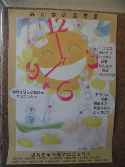 「時間を守る」「挨拶・返事をしっかりする」「掃除を頑張る」という生活面での基本を徹底したいと思います。各教室に中京中学校の先輩の書いたポスターを貼っています。参観日にはぜひご覧ください。