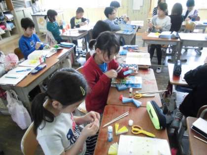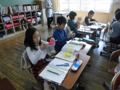 4年生は高学年の仲間入りをして張り切っています。算数の最初の単元は「角」の学習です。色紙で扇方を作り,導入の学習をしていました。どんどん学習内容が難しくなってきますが今の張り切っている気持ちを忘れず粘り強く何にでも挑戦していってほしいです。