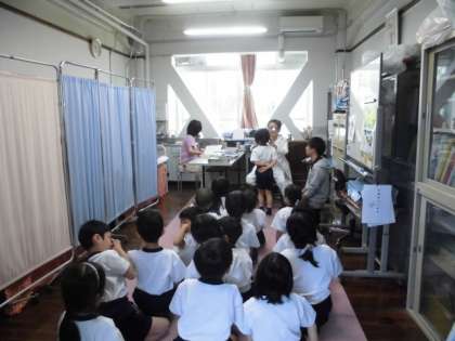 しっかり学習・運動ができるようにいろいろな健康診断が始まっています。耳鼻科検診では,水泳学習に支障がないかも見てもらっています。治療のお願いのプリントを持ち帰りましたら早めに受診をお願いします。