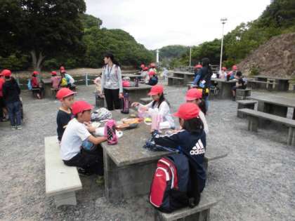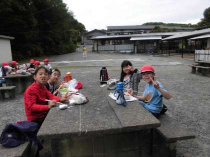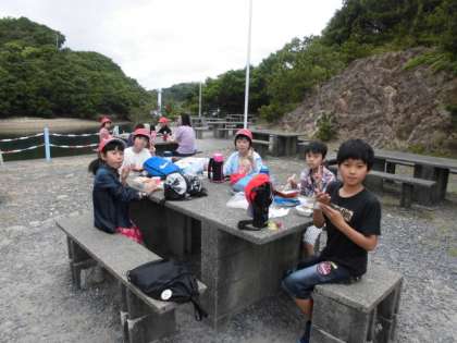 お家の方が朝早くから作ってくださったお弁当をみんなで食べました。深谷水道を行きかう船に手を振りながらおいしくいただきました。元気いっぱいでみさきの家の活動が始まります。