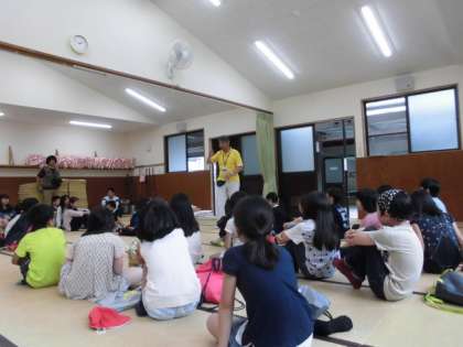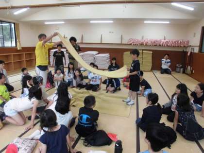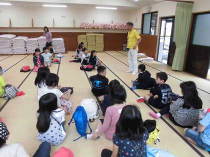 入所式に続いて「オリエンテーション」を受けました。トイレのこと,お風呂のこと,寝具のことです。返事やリアクションが素晴らしく所員の方に褒めていただきました。実際の寝具を使って教えてもらい,ばっちり自分たちでできると思います。