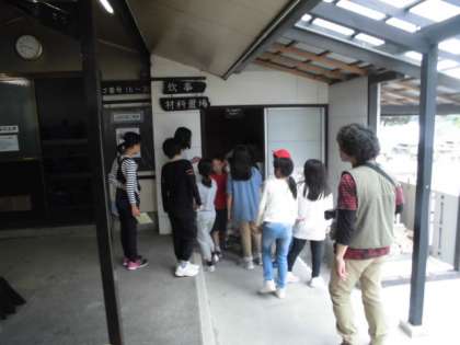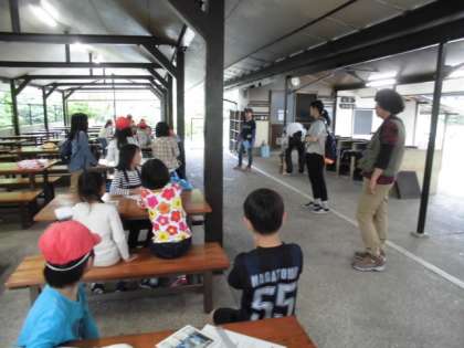 野外の炊事場で「すき焼き風煮」を作ります。最初に約束や作り方を聞いて係りの分担に従って調理に取り掛かりました。