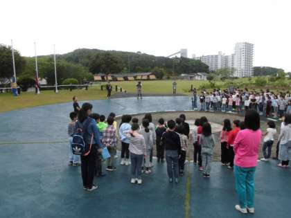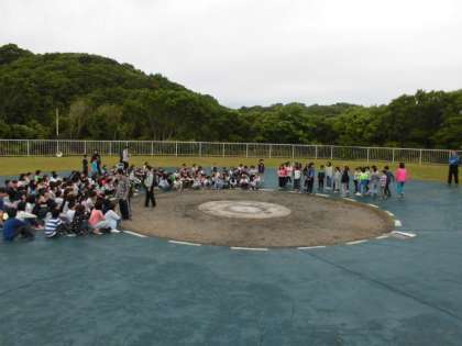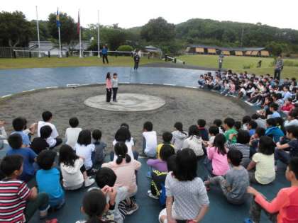 朝の集いの時間です。みさきの家ではその時に宿泊している学校が一緒に朝の集いをします。校歌を歌ったり,学校の紹介をしたりします。太秦小学校はとても大きな学校で4年生だけで洛中の全校児童に近い人数ですが,委縮せずに元気よく校歌を歌えました。道で会ったら挨拶するんだよ、と指導していますがどちらからもあんまりしていないように思います。自分から元気よく、が理想ですがちょっと残念です。