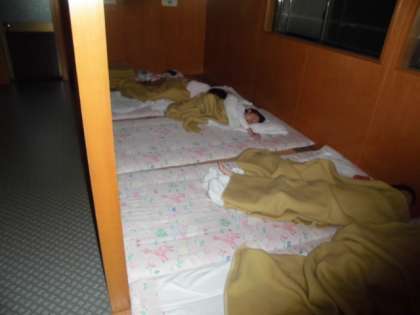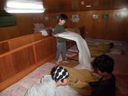 いよいよ3日目の朝です。昨日の夜は早くから静かになって全員ぐっすり眠れたようです。起床時刻5分前にのぞきに行きましたが全員熟睡でした。音楽が鳴り少しずつ目を覚まして,みんなで布団の片づけをしました。協力して素早くできていてさすがでした。