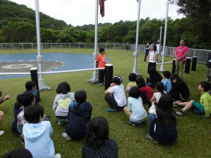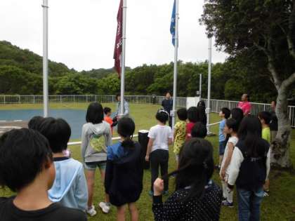 いよいよ退所式です。3日間お世話になった所員の方にお礼を言って洛中の旗を降ろしました。「バンガローありがとう」「みさきの家ありがとう」と声に出してさよならを言っている人もいました。みなさんに見送ってもらって志摩マリンランドに向かいました。