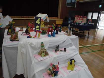 校内作品展を鑑賞しました。いろいろな学年の作品をていねいに見て感想カードに書いていました。1年生の作品の前では、「おいしそうだな。」「色が本物とそっくりだ。」と友だちと楽しそうに話しながら見ていました。五年生の作品は、来年自分たちが作る楽しみもあって真剣に見ている児童もいました。「小さな美術館みたいだな。」うれしい感想です。