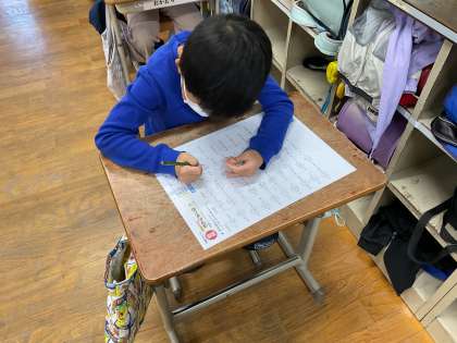 漢字50問テストに取り組みました。集中して頑張っていました。