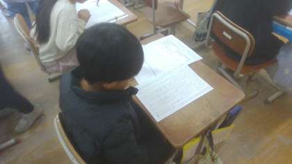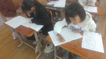 「食べ物のひみつを教えます」の単元で作成していた文章が完成しました。友だちと書いた文章を読み合い、一人ひとりの文章の工夫を見つけました。これからの国語の学習に生かしていって欲しいです。