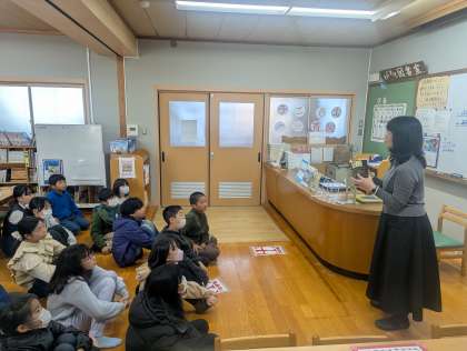 図書館司書の先生に、ブックトークをしていただきました。今回のテーマは「ふしぎな世界」です。小さい頃に読んでもらった絵本や、アニメにもなった人気の本など、不思議な世界をわたるお話を5つ紹介していただきました。とても楽しそうに聞いていました。