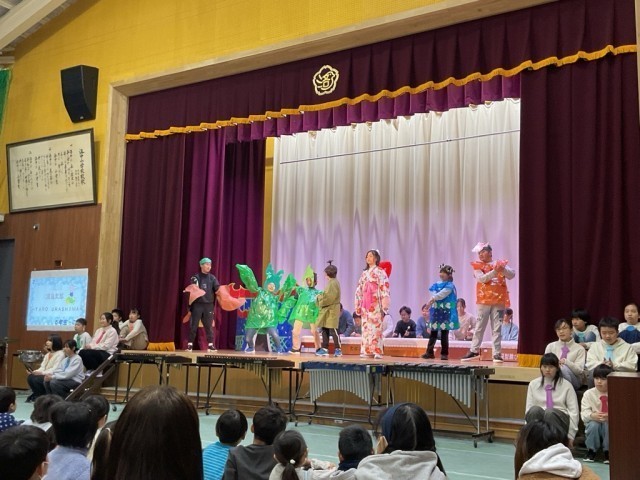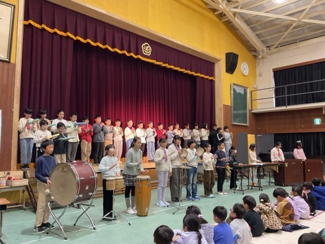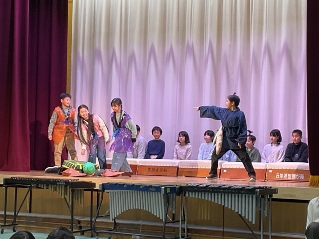 本番中の子ども達の様子についてですが・・・、とてもとても緊張していたようです。舞台裏で自分の出番を待っている間も、いつもなら小声で友達と話たりしていたのですが、本番は黙ってじっくり舞台上のやり取りを確認しているのでした。合奏は、練習以上にうまくいったようで、どの子も満足気にふり返っていました。