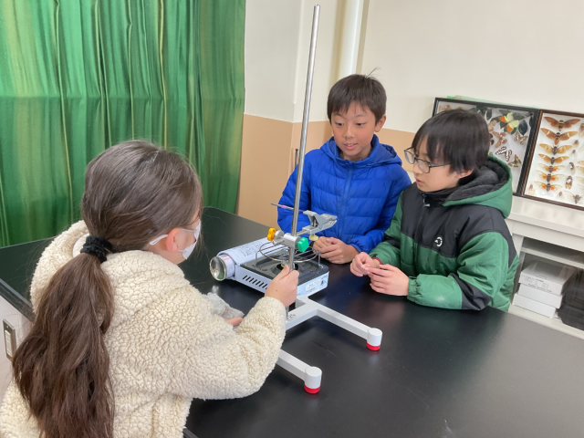理科の学習で、ものはどのように熱が伝わっていくのか実験をしました。