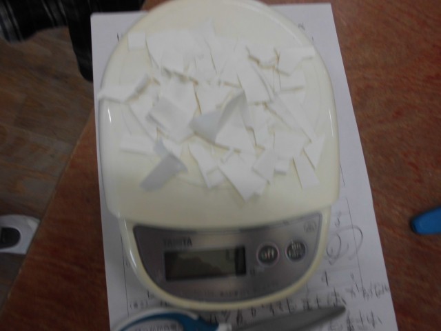 初めに紙コップの重さをはかると4gでした。形がかわると重さが変わるかどうかを予想してみると、3年生全員が変わらないと答えたました。理由は、形が変わっても紙コップ1つにかわりはないからでした。