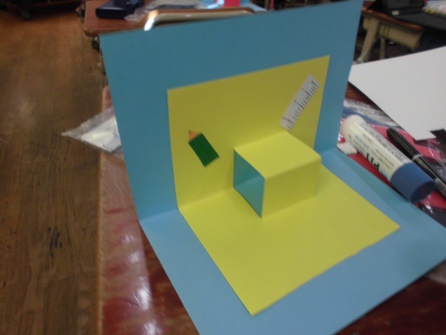 「幸せを運ぶカード」がだんだんできてきました。飛び出す仕組みにいろいろな絵を画用紙で作ったりマジックで描いたりしながら、渡す相手を思い浮かべて作っています。出来上がるのが楽しみです。