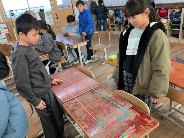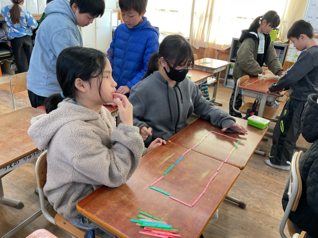 まずは、実際に18本の数え棒を使って長方形を作り