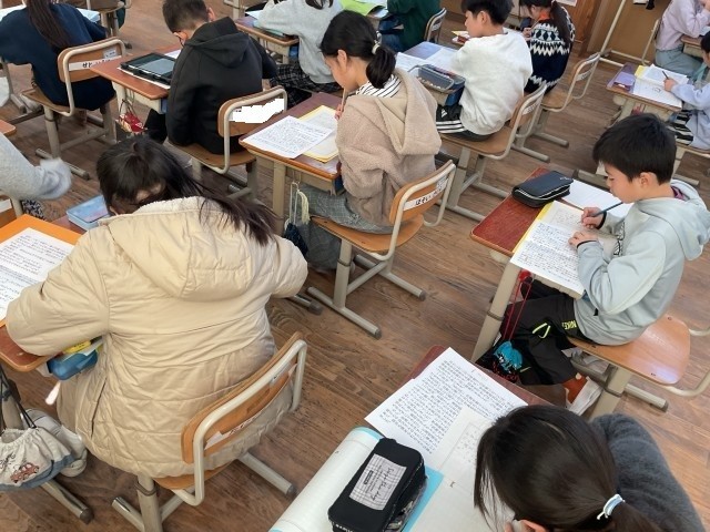 今まで考えてきた文章をもう一度見直し、どのように発表したいか考え、原稿用紙に書いたり覚えたりしました。