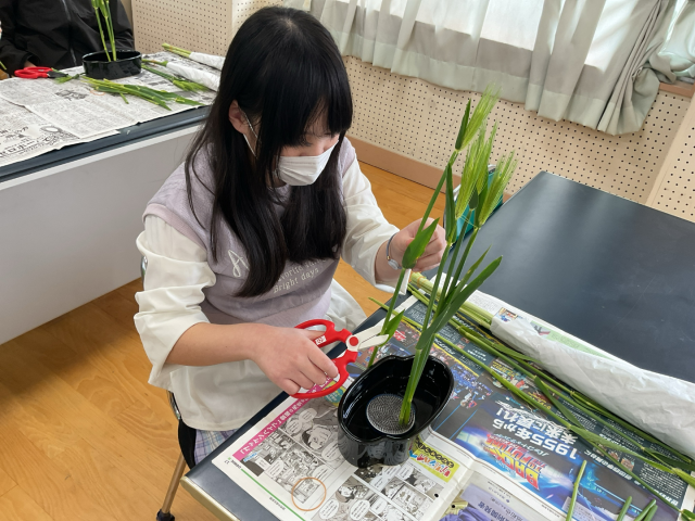 活けたお花は校内に展示しました。本日、お花を持ち帰っております。家でもお花を観て、癒されてください。