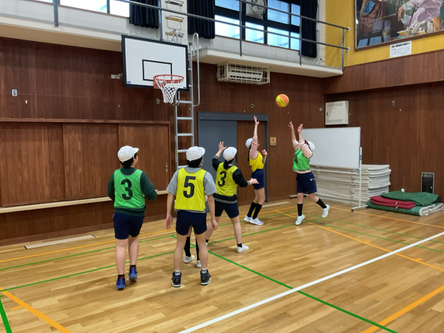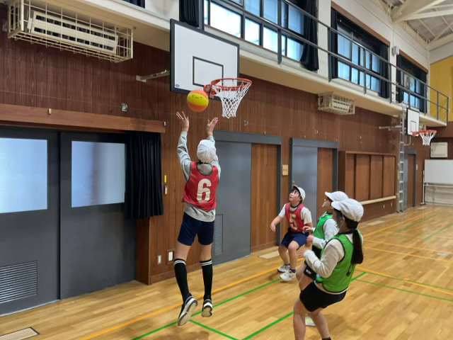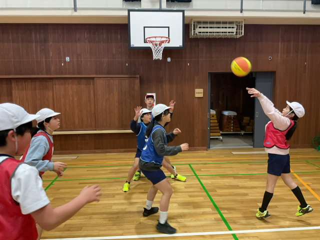 小学校最後の体育の学習で「バスケットボール」をしています。パスやドリブル、シュートなどの練習して、ゲームをしています。シュートでは、レイアップシュートの練習をしています。最初は、うまくシュートが入りませんでしたが、少しずつシュートが入るようになってきています。来週も授業があるので、成長が楽しみです。