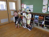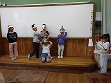声の出し方や動き方を工夫しながら、様子が伝わるように音読しています。
