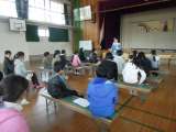 卒業式の前々日準備を4,5年生と職員で行いました。床を掃除した後,シートを敷いて...