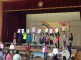 中間休みにダンスクラブの発表会がありました。雨だったのでほぼ全校児童が体育館に集...
