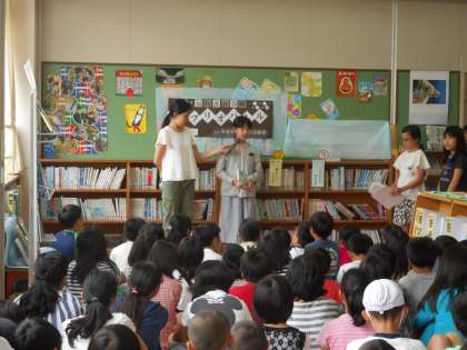 中間休みになると同時に,たくさんの人が図書室に集まってくれました。感想や質問の挙手もたくさんあり,とても活気がありました。ありがとうございました。
