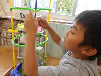 あさがおのつるがグングン伸びてきたので支柱を立てました!!