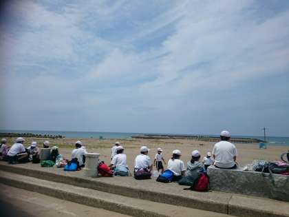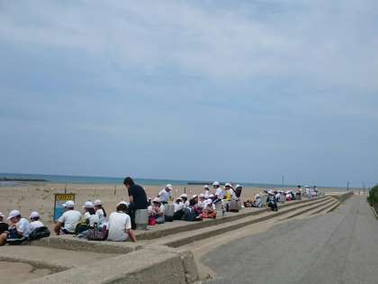松任海浜公園で,日本海を眺め,気持ちのよい潮風に吹かれながら昼食です。