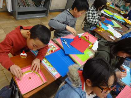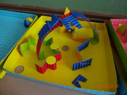 校内作品展で展示する「コロコロガーレ」の作品を作り始めました!ビー玉が楽しく転がるように,アイデアいっぱいのゆかいなコースをつくっていきます。ビー玉がうまく転がるか試しながら,形や色を工夫しています。つくったコースで遊ぶのが楽しみですね!