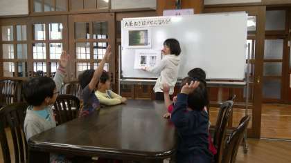 クイズ形式で子どもたちは意欲的に授業に取り組んでいました。