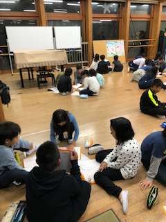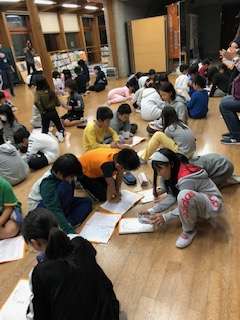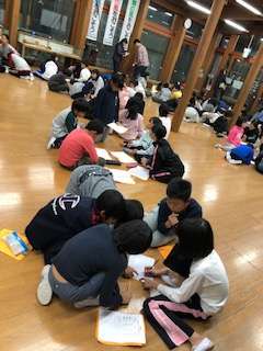 協力できたことや反省点,明日がんばりたいことなど班で話し合いました。