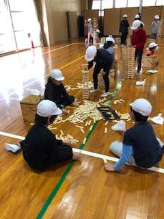 全員紙すきも終えてから集まった時に,高さ比べ競争をしました。