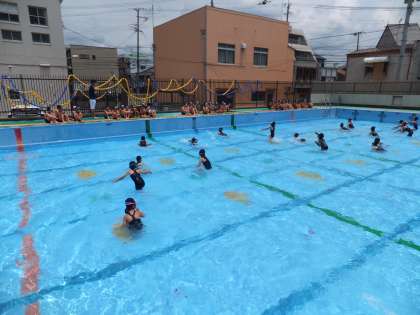 11日(火)から体育科の学習で水あそびが始まりました。子どもたちは,とても楽しみながら水に慣れようとがんばっていました。これからの学習で,少しでも泳ぐ力をつけていってほしいと思っています。