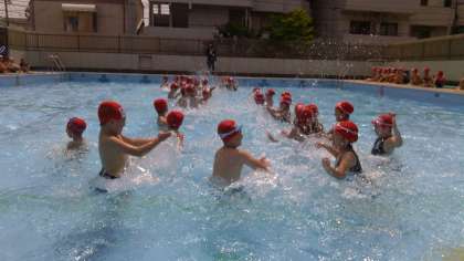 プールの中をお散歩したり,水の掛け合いをして,とても楽しそうでした。
