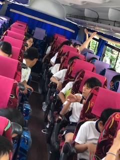 元気よく見送りの保護者の方々に手を振っていました。