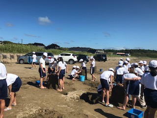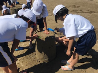 砂像作りも終盤に!さてさて、どんな像が出来上がるのかなー!