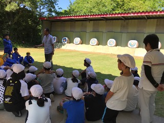 アーチェリーの説明を受けています。