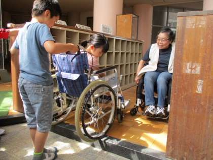 車椅子の体験を通して,「段差がこわかった」「2階に行きたい時は,どうしたらいいのか」など,様々な感想や疑問をもった子どもたち…